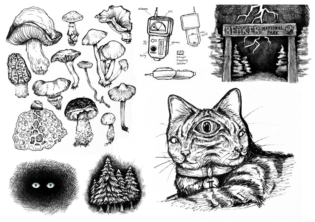 One of my ongoing worldbuilding exercises, Beaker National Park, stems from a short story I wrote in highschool. Overall, writing is not my strong suit, however I quickly became fond of the world I was creating and continued to build on it. Eventually this culminated in a short film for an assignment at Toi Whakaari (linked above).