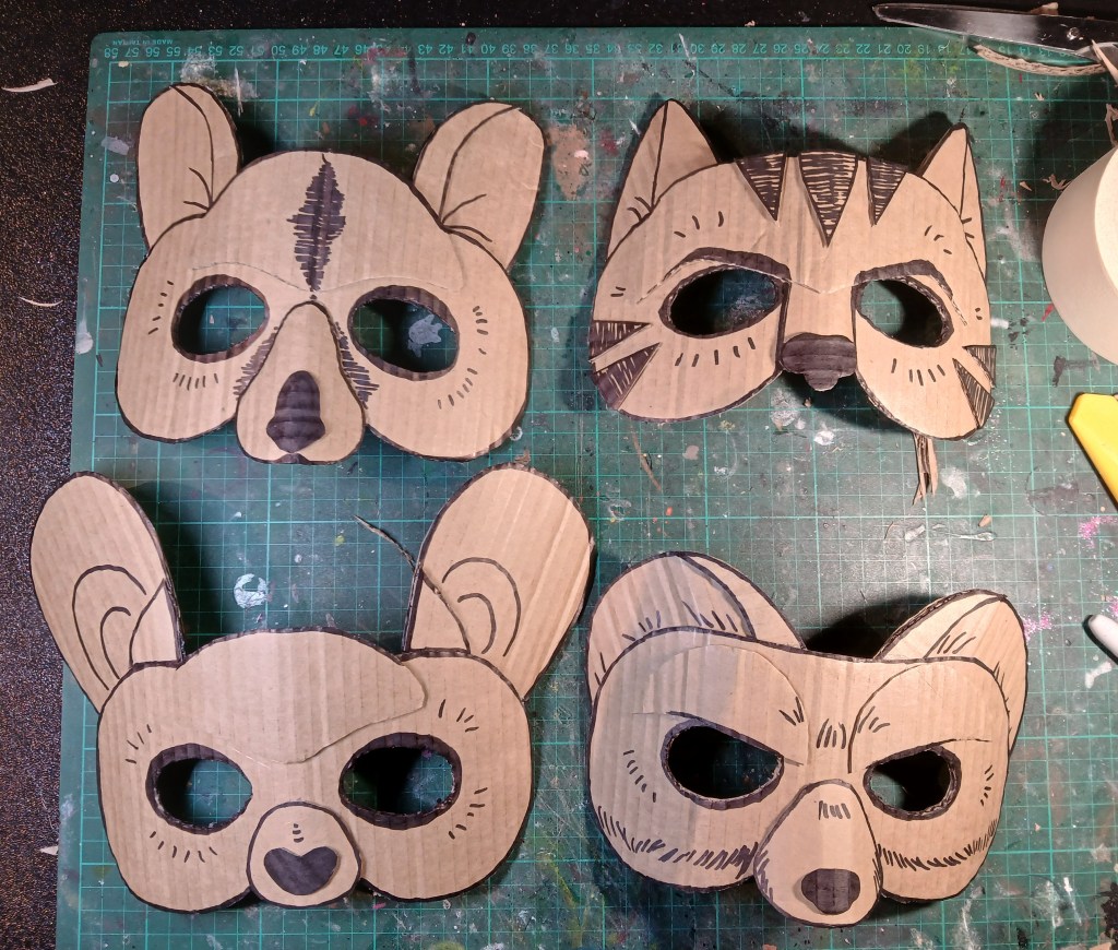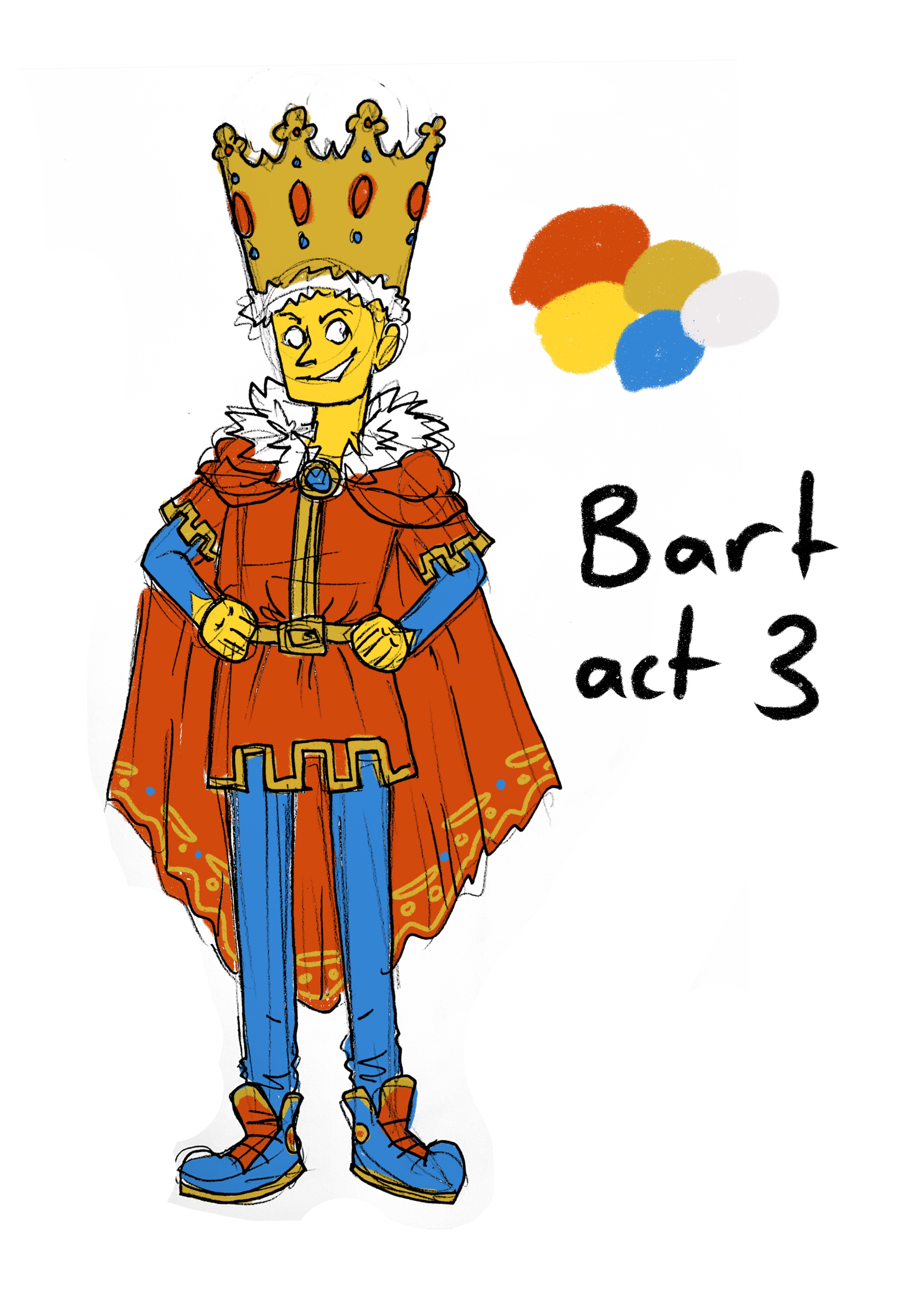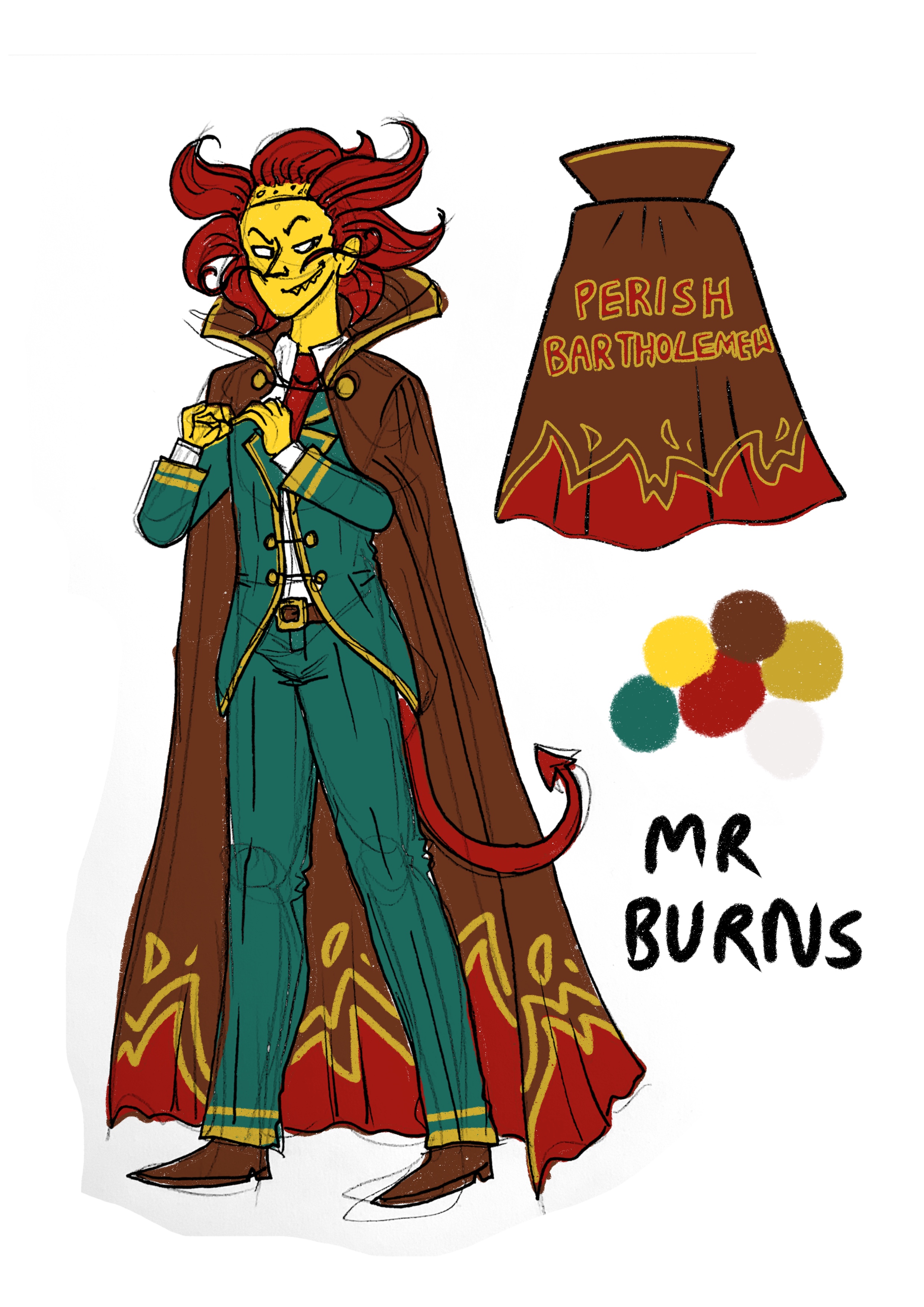 The final live performance I worked on during my studies was ‘Mr Burns: A post electric play’ written by Anne Washburn and directed by Stella Reid. I was in charge of costume design for all 3 acts. The first and second acts were a typical, post apocalyptic aesthetic, however the third act threw that out the window and staged an exaggerated, insanely incorrect recreation of the Simpsons episode ‘Cape Feare’. For this I designed this set of Simpsons costumes inspired by religious deities and figures of myth and legend, which were assembled by students of the Diploma of costume construction.