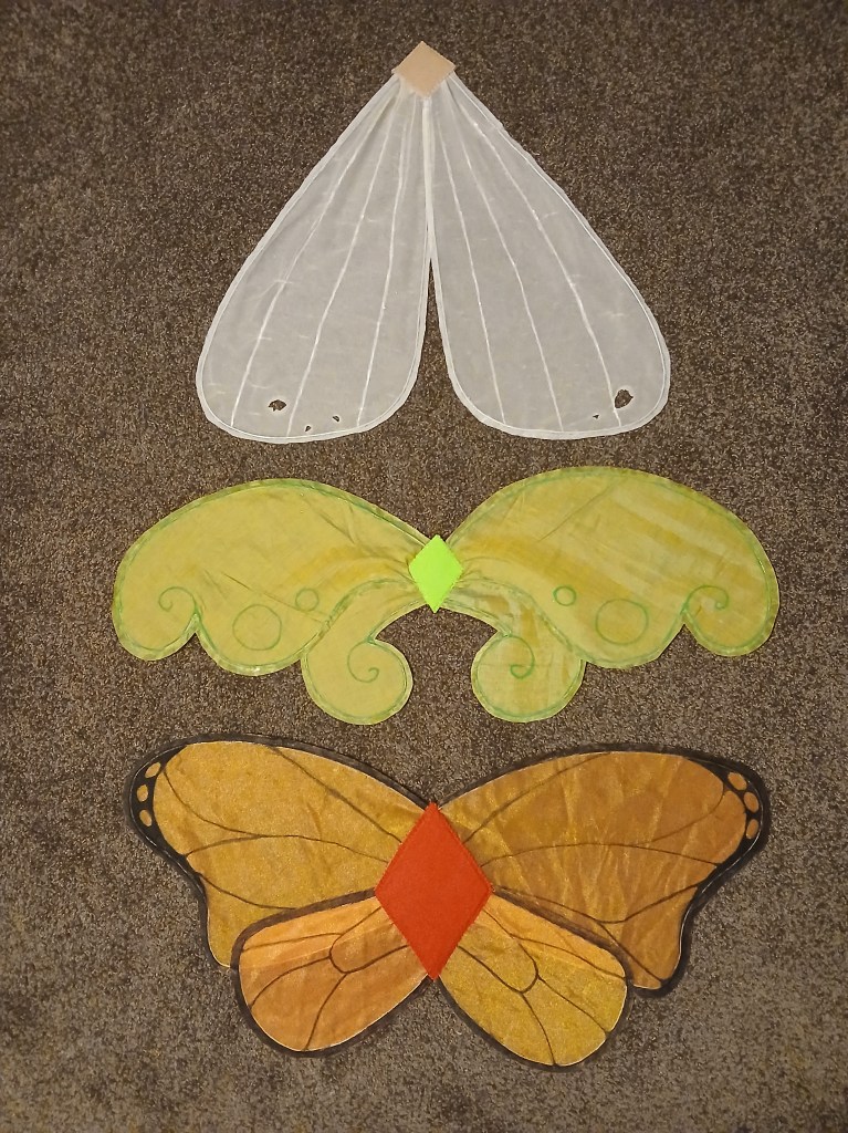 Fairies playing football was a family friendly theatre production created by Sarah Penny for the Wellington fringe festival 2024. My role was as costume designer/maker and I also provided some props. Because this was a low budget indie production most of my costumes were sourced, however I made multiple bespoke pieces including wings, hats, masks and team vests.