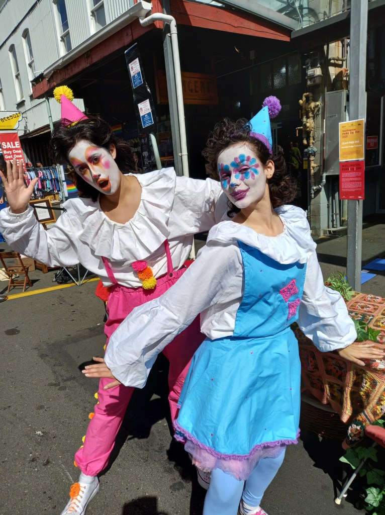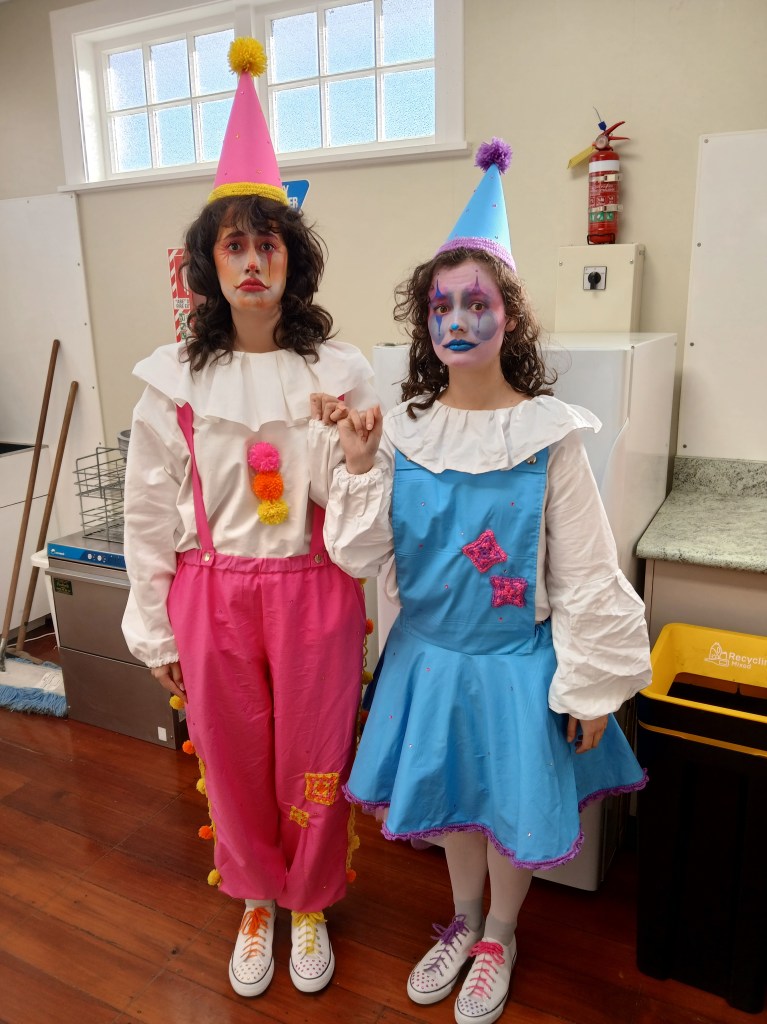 Other costumes I made for Sarah were a pair of clown costumes for a short film called ‘Funny Business’. Sarah has also used these costumes for other performances around Wellington and they are some of my favourites I’ve ever made! They were meant to look crafty and colourful so I added lots of fun textures including crochet, rhinestones and pom poms.
